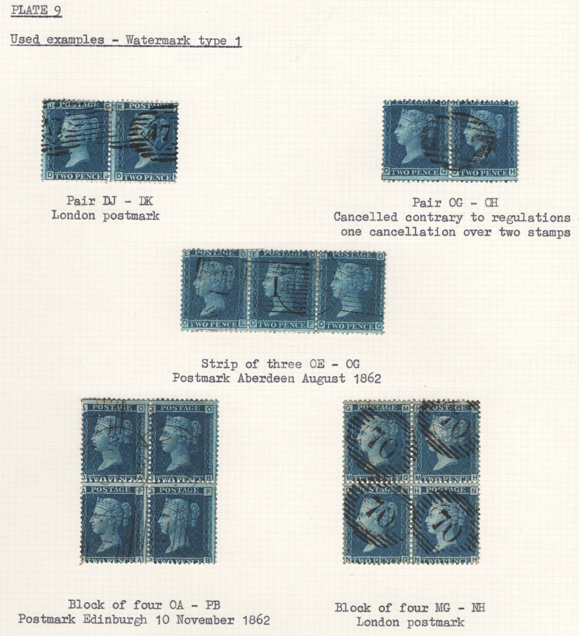 2d blue plate 9 wmk type I, 2 blks of 4 fu (c£800) also 2x pair + strip 3sg45