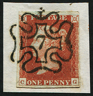 GB 1841 1d red plate 38 CG #7 in MX, brilliant upright strike tying to small piece Four close-large margins sg8m [ref 293-210/sb/al021]
