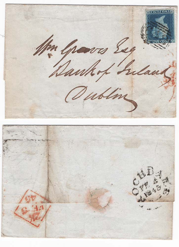 GB 1841 2d plate 3 HK vfu on EL to Dublin, VARIETY HK double letter, Rochdale 648 numeral c£350 on cover sg14 [ref 293-215/sa/ak0066]