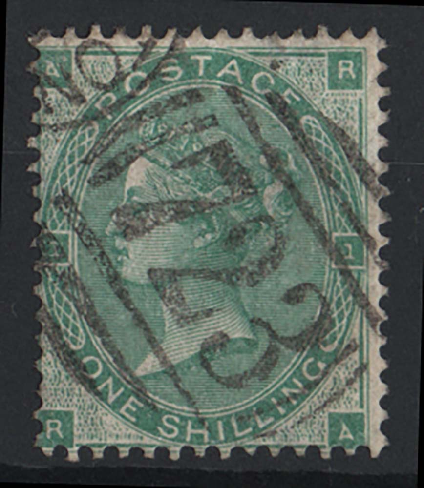 GB 1862 1s green, small corner letters fine used, crisp Southampton 723 duplex sg90 [ref 291-229/sa/ai0466]