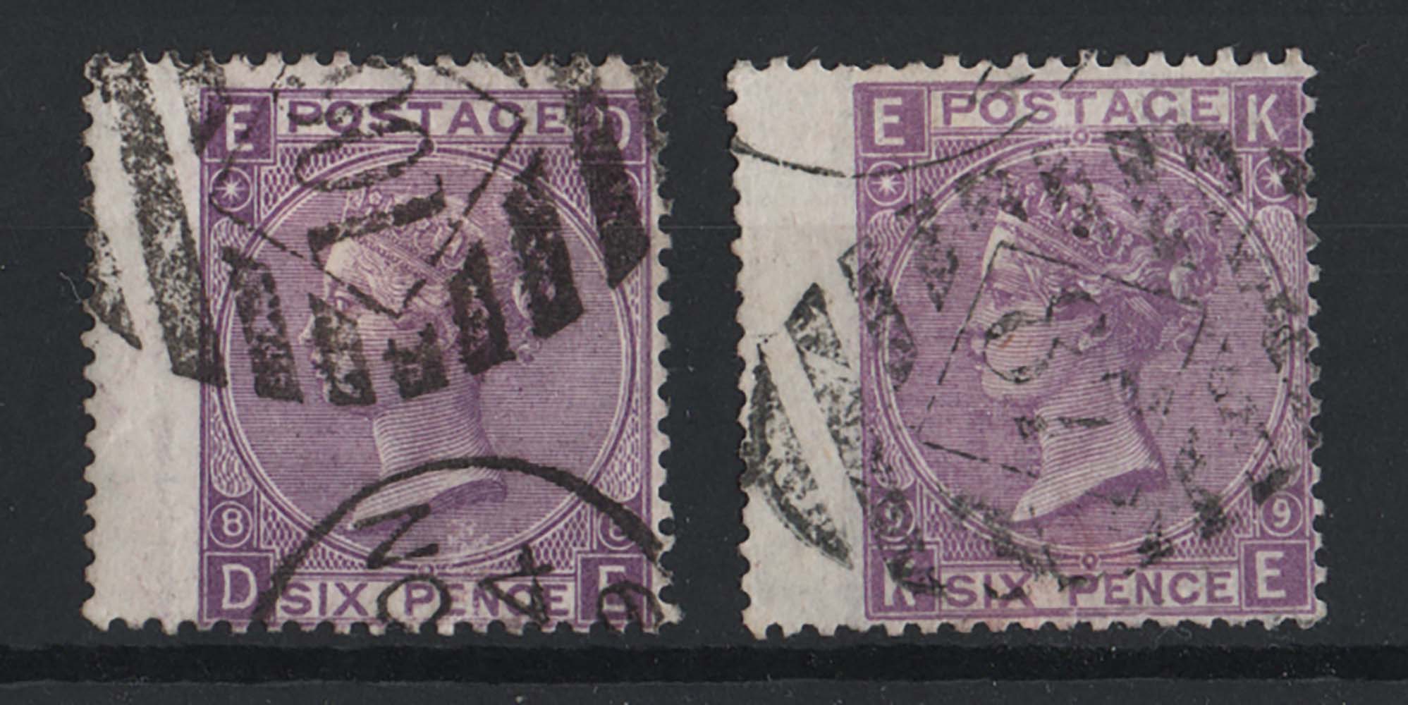 GB 1867 6d mauve plates 8 and 9 good used sg109 cat £120 [ref 291-249/sa/ai0486]