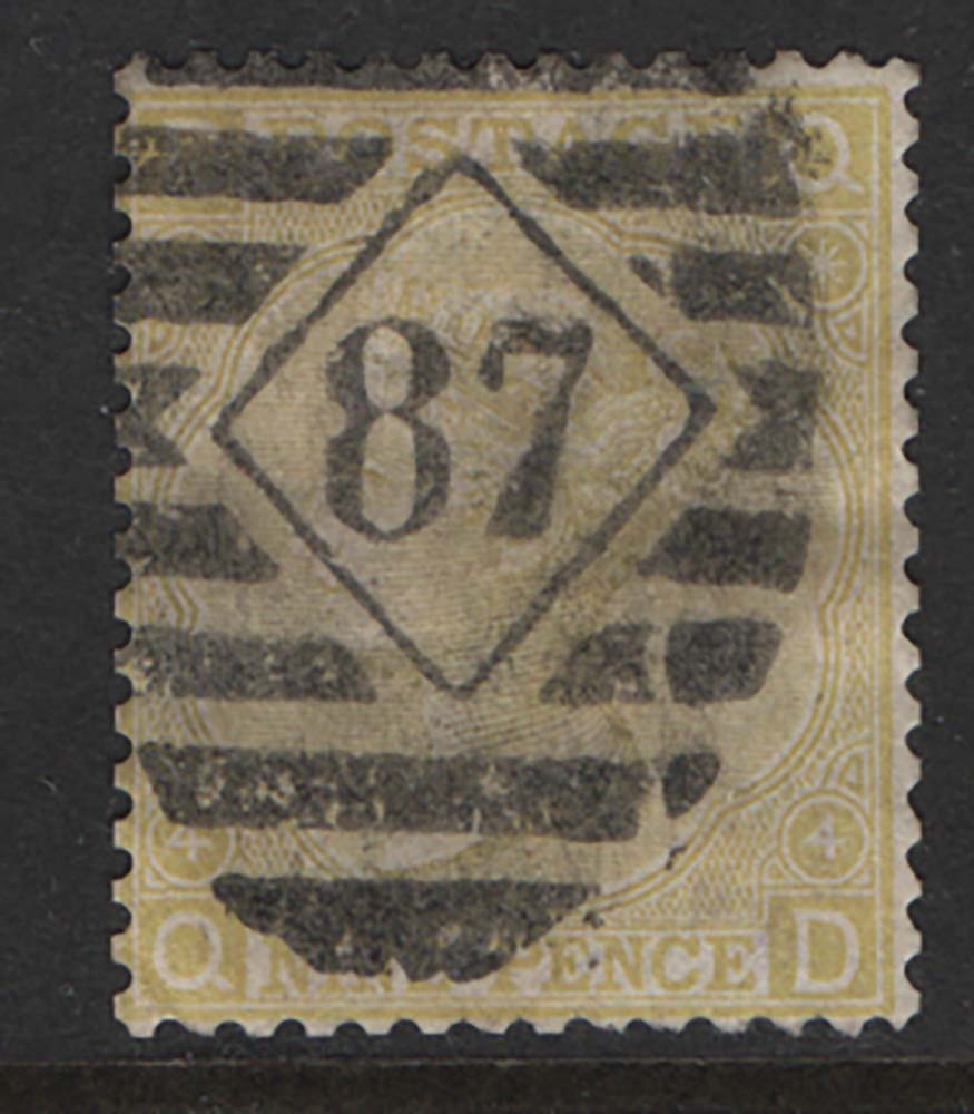 GB 1867 9d straw good used sg110 cat £180 [ref: 294/251 l/am0066]