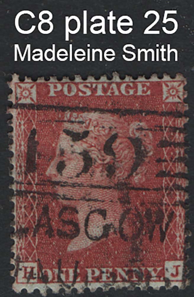 1d brick-red LC14 plate 25 HJ sg30 C8 fu neat Madeleine Smith Glasgow cancel, large crown perf 14 blued paper