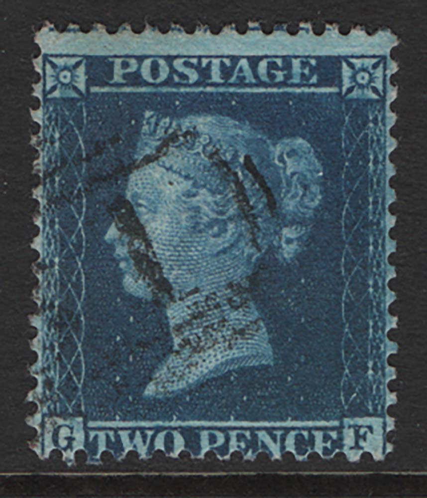GB 1854 2d blue large crown perf 14 plate 6 vfu sg35 [ref 293-254/sa/ak0035]