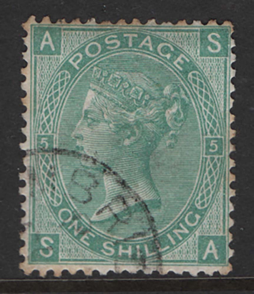 GB 1867 1s green plate 5 very fine used cds sg117 [ref: 294/255 l/am0042]