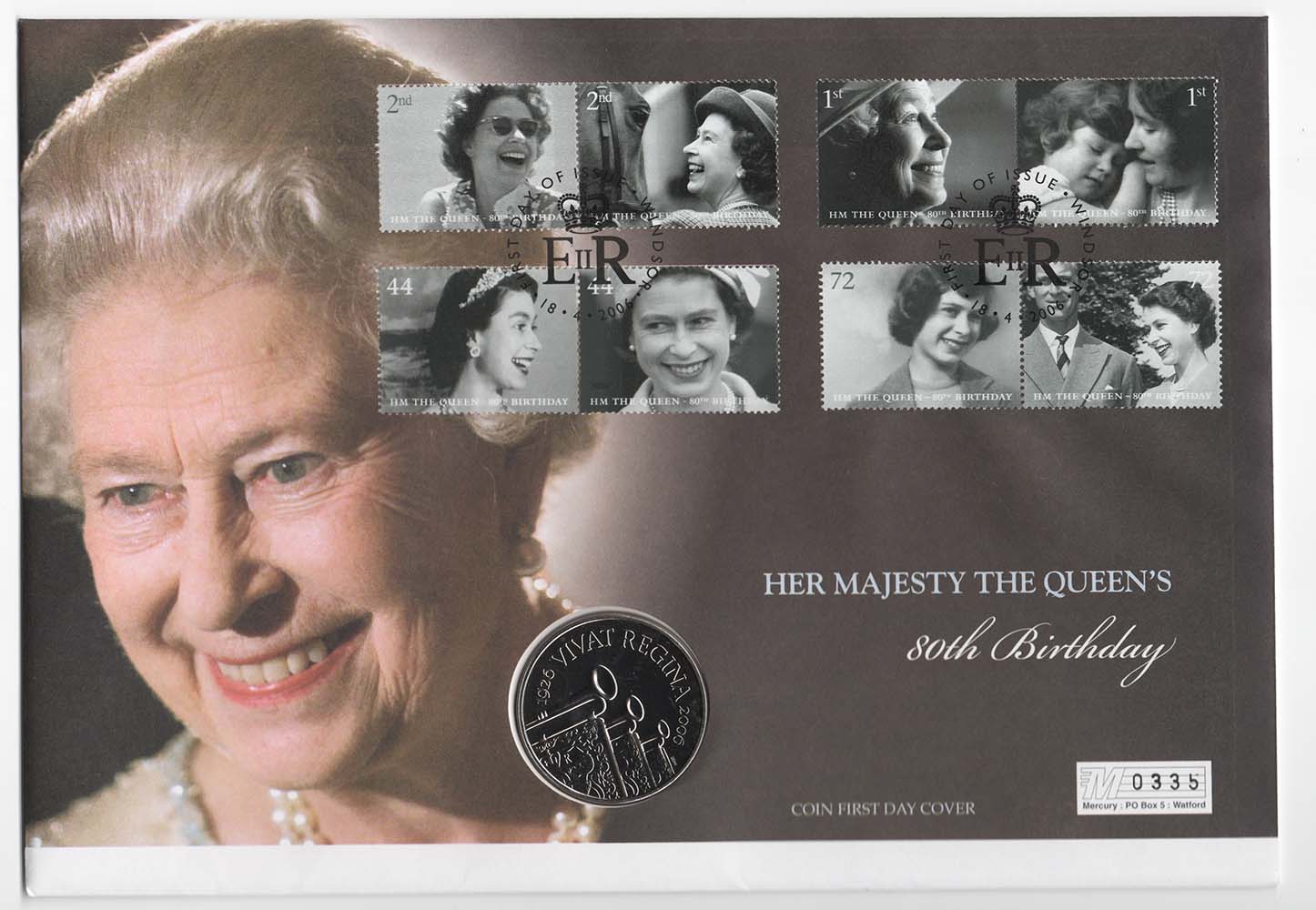 GB 2006 Queen’s 80th Birthday set coin cover incl £5 coin Mercury cover – fine [ref 288/b83a/9u0045] Elizabeth II