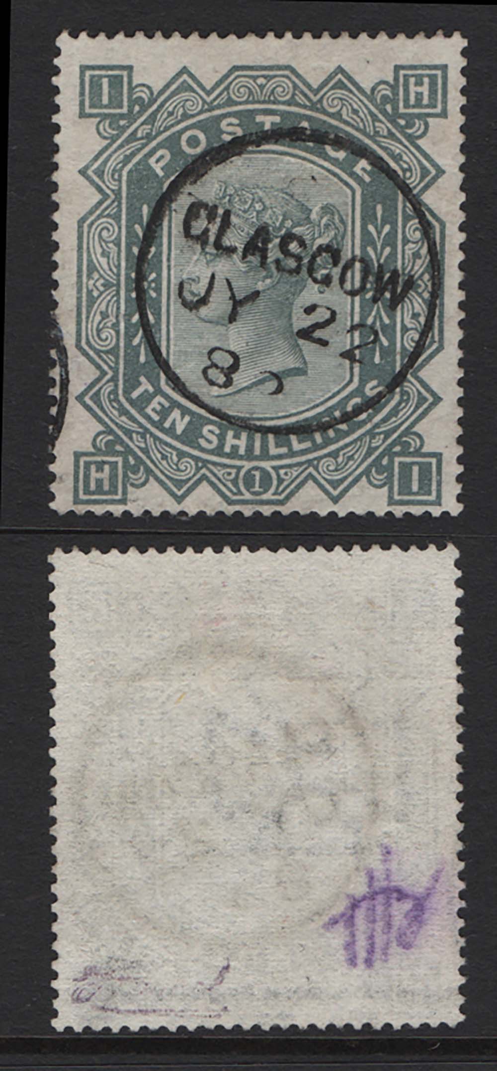 GB 1867 10s grey-green watermark MX very fine used sg128 good colour, fine cds, pressed crease doesn’t detract from fine appearance, signed twice on back, lovely clean example cat £2250 [ref 291-264/sa/ai0321]