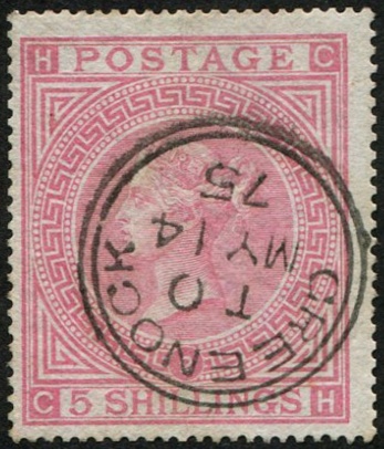 5s sg127, plate 2 pale rose vfu, Greenock.1875 cds, fresh & pretty, scarcer plate. (c£1,500)