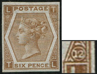 6d sg124a, plate 12 PALE CHESTNUT (ABNORMAL) TL IMPRIMATUR vf mint, superb fresh, fine four margins, rare (Ex Verus) (Spec J80/2) (c£6,800)