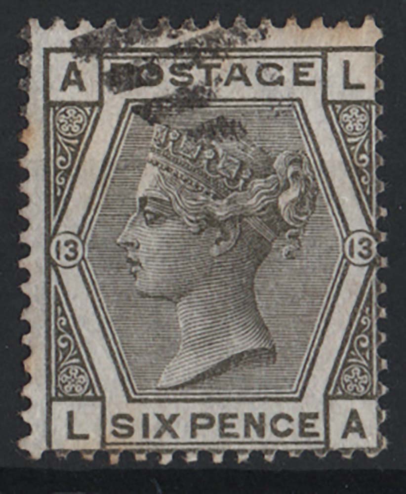 GB 1873 6d deep grey plate 13 very fine used clear profile sg146 cat £75 [ref: 294/288 sa/am0427]
