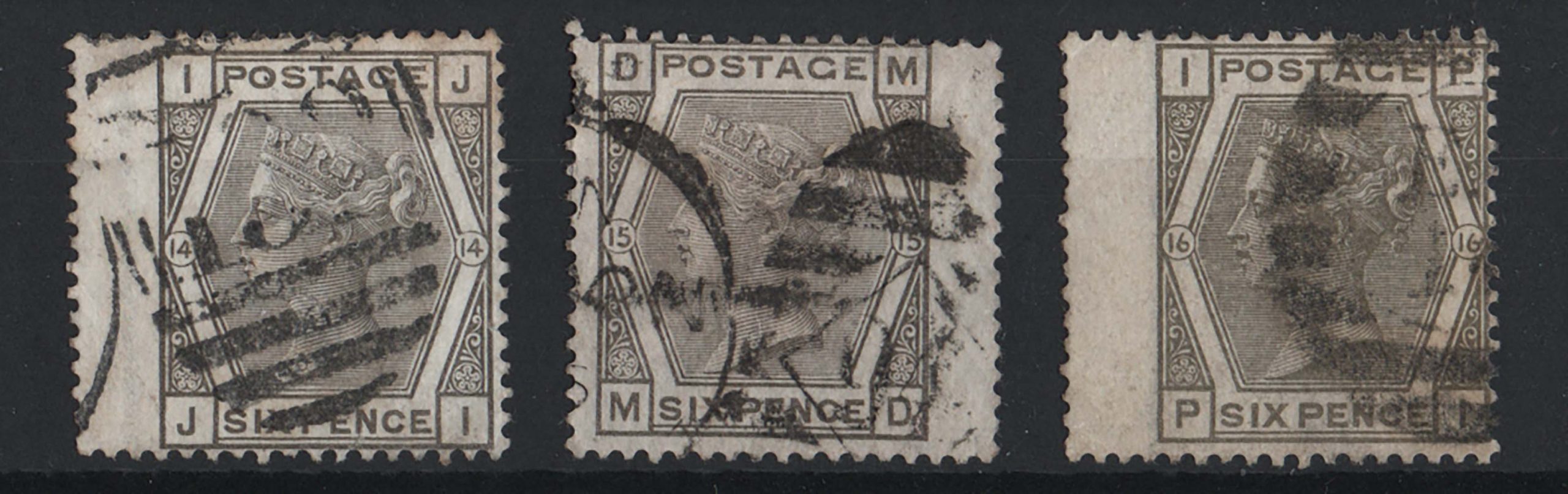 GB 1873 6d grey plates 14, 15, 16 very good used sg147 [ref 291-312/sa/ai0477]