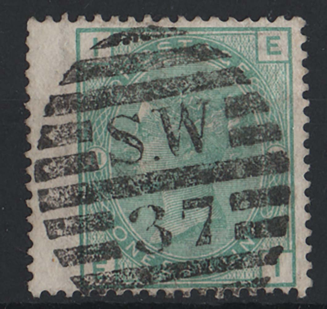 GB 1873 1s green plate 11 vgu crisp SW/37 London numeral sg150