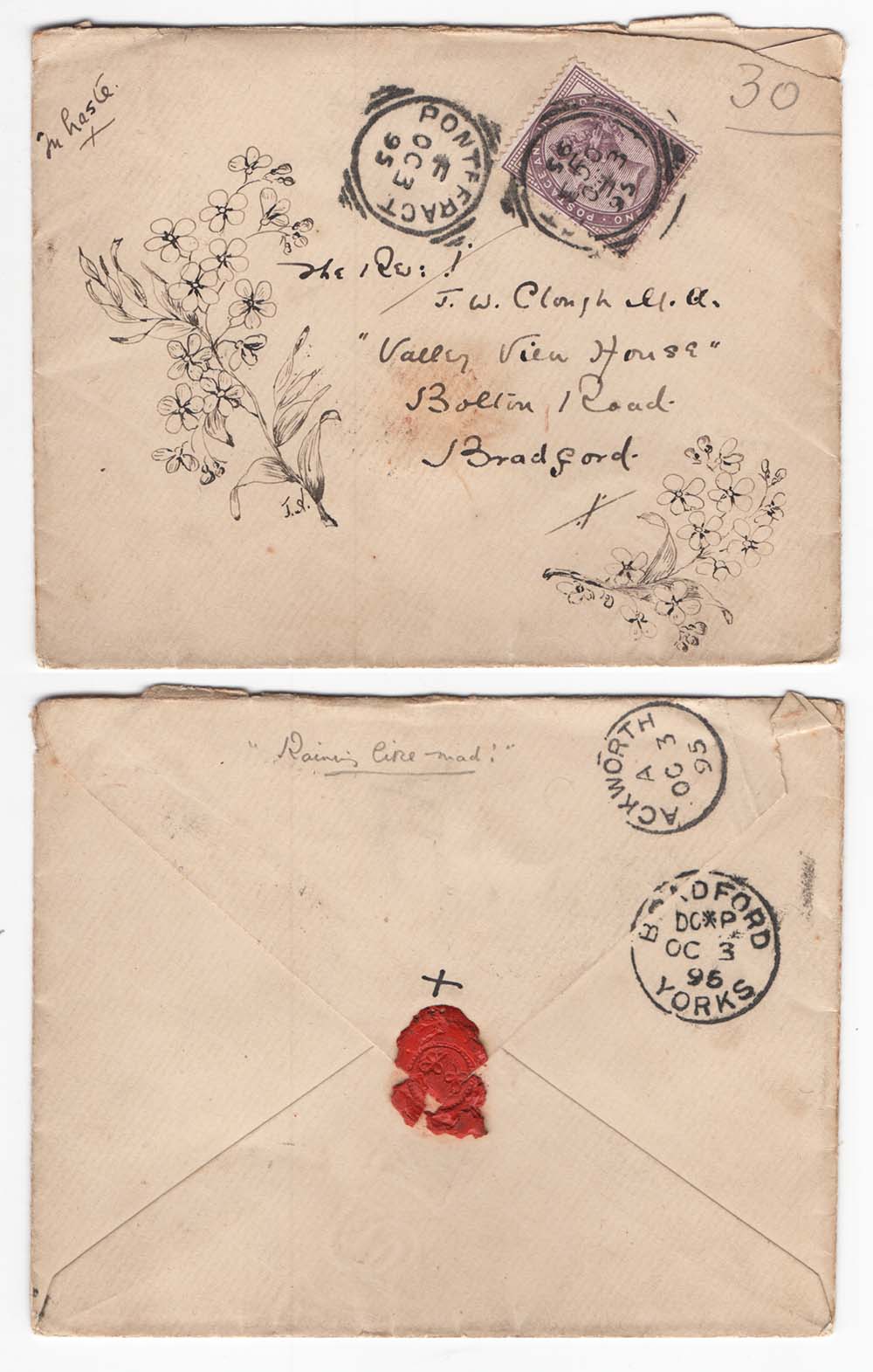 GB 1881 1d lilac on 1895 neat hand illustrated cover (fine flora ink drawing) from Pontefract to Bradford sg172 [ref: 294/322 sa/am0431]