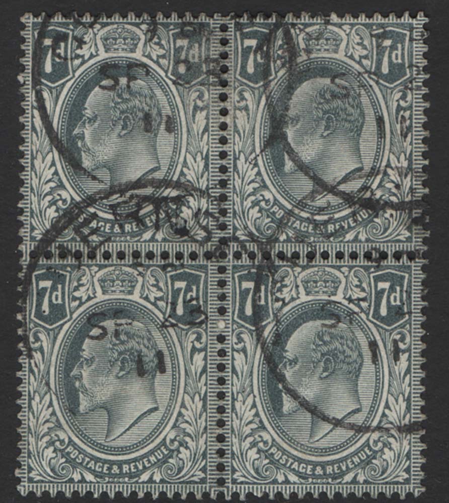 GB 1902 7d grey-black fu blk of 4 sg249 c£110 as block ae0112 sa 289/ #323