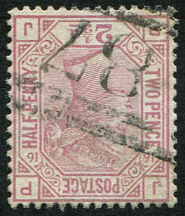 2½d sg141wi, plate 16 WMK inverted vfu, well centred light Scots cancel. Difficult