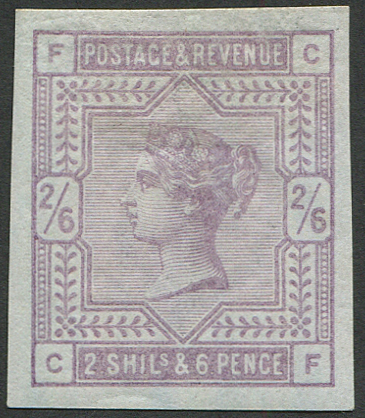 GB 1883 2/6d sg175 (on ‘BLUED PAPER’) ‘CF’ IMPRIMATUR, four large-huge margins, fine mint, excellent bluing (cat £5,000) [ref: 294/326 sb/an044]