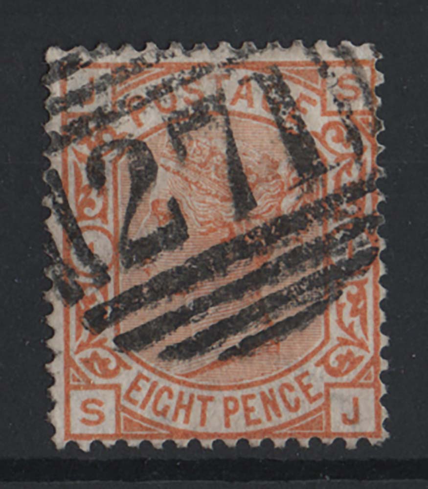 GB 1876 8d orange very good used, crisp 271 Eastbourne numeral sg156 [ref 291-328/sa/ai0472]