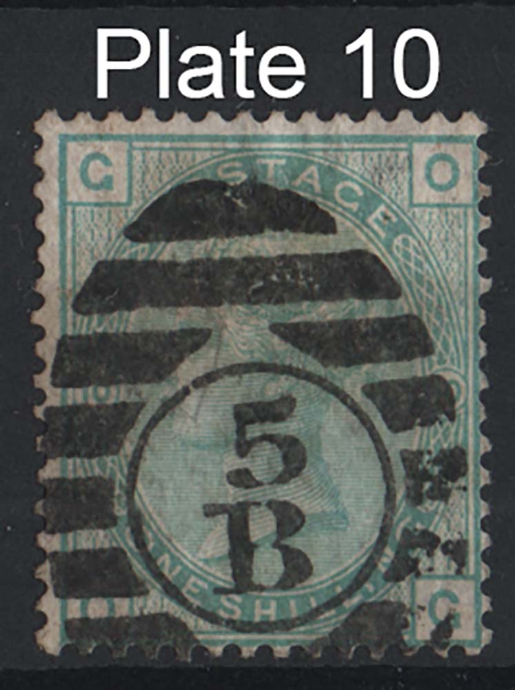 GB 1873 1s green plate 10 good used, crisp 5/B numeral (unusual) sg150 cat £120 [ref 293-330/sa/ak0532]