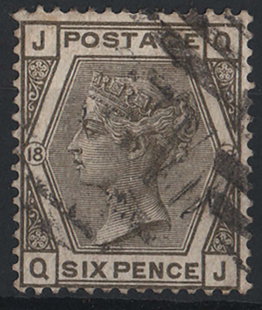 GB 1880 6d grey plate 18 watermark crown fine used, clear profile sg161 [ref 291-337/sa/ai0475]