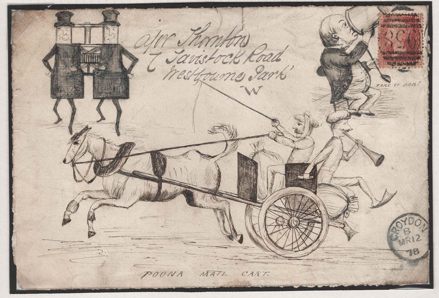 GB 1878 1d red plate 186 fine used on attractive 1878 hand-illustrated cover front sg43 – from the Major Thornton correspondence [ref 293-340/l/ak0812]