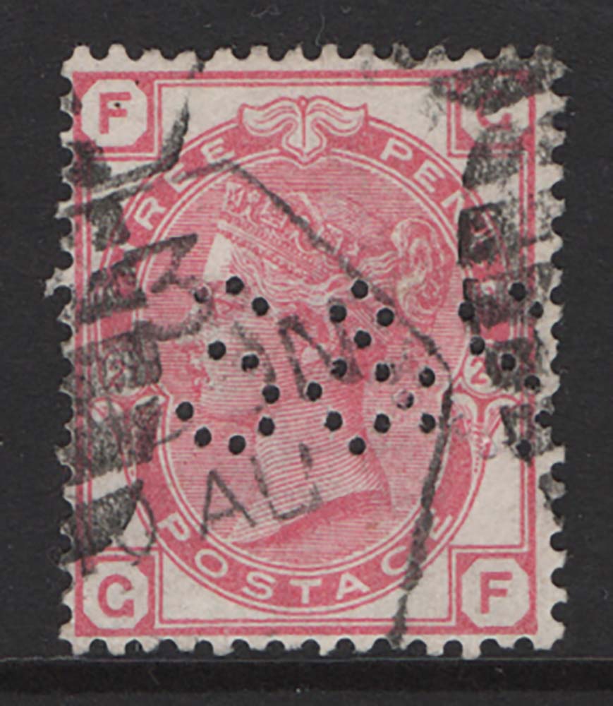 GB 1880 3d rose plate 21 sg158 S&S perfin fine used cat £75 [ref 293-345/sa/ak0500]