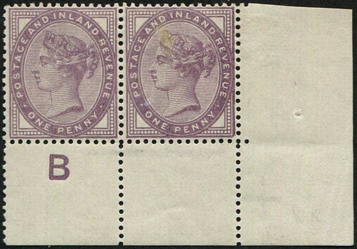 #354 GB 1881 1d sg172 CONTROL B setting 1b, no marginal rule Pair, f mint