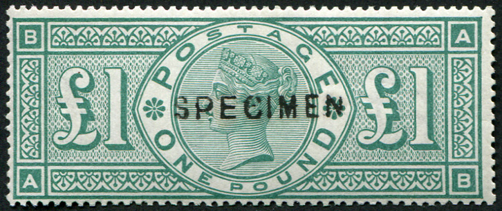 GB 1891 £1 GREEN sg212s ovpt Specimen TYPE 11, very fine mint, lovely vivid colour. [ref: 294/356 sb/an053]