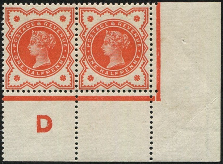 GB 1887 ½d sg197 CONTROL D(P), CORNER PAIR unmounted mint MARGINAL SETTING 3 superb fresh & scarce [ref 293-365/sb/al078]