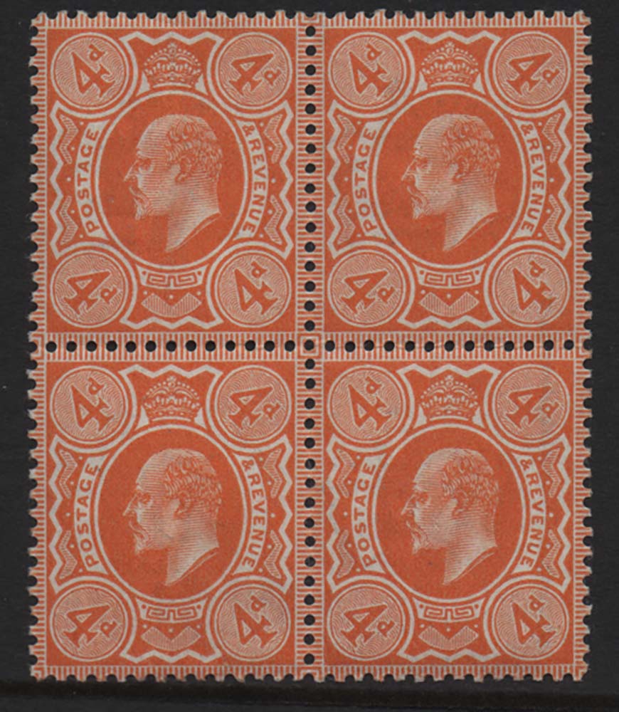 GB 1902 4d orange fresh mint block of 4, (1x um) sg240 cat £105 [ref: 294/365 sa/aa0802]