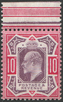 GB 1902 10d sg255 SLATE-PURPLE (C) unmounted mint, top marginal (Spec M43/2) [ref: 294/369 sb/an061]