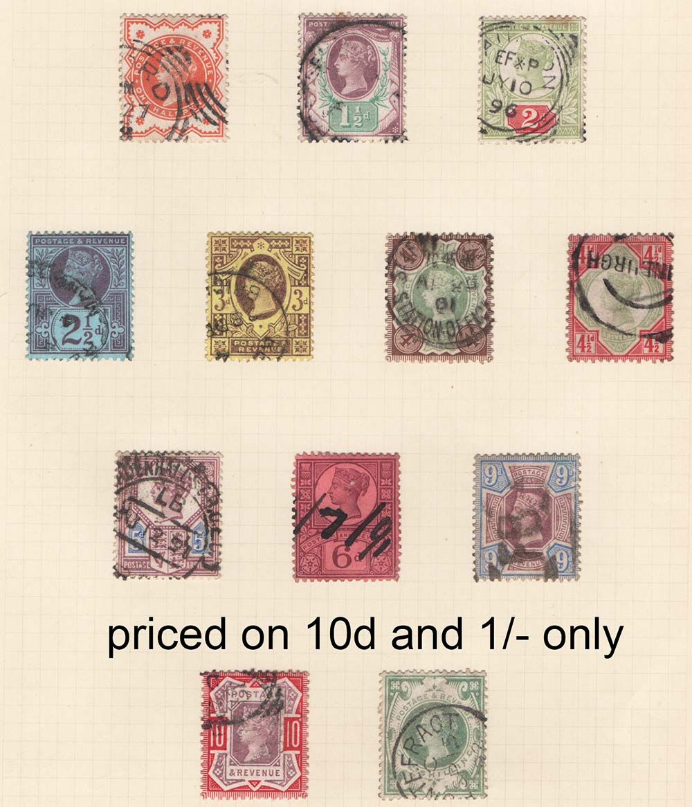 GB 1887 Jubilee 10d & 1s green very fine used sg210-211 cat £110 then ½d-9d used included FREE [ref 293-370/b08/ak0528]