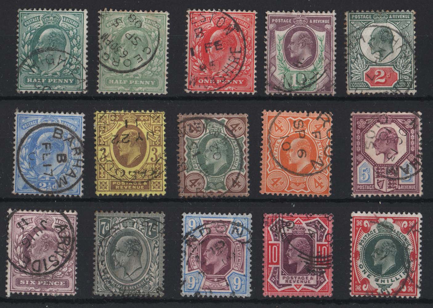 GB 1902 ½d – 1s basic set of 15 very fine used, good colours sg215-314 [ref 293-379/sa/ak0351]
