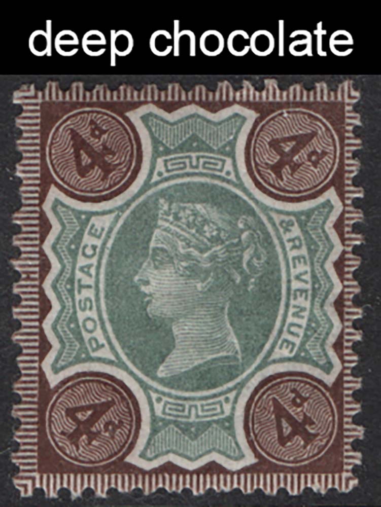 GB 1887 4d green & deep chocolate-brown fine mint sg205var Spec K33(3) specialised shade cat £80 [ref 291-380/sa/ai0197]