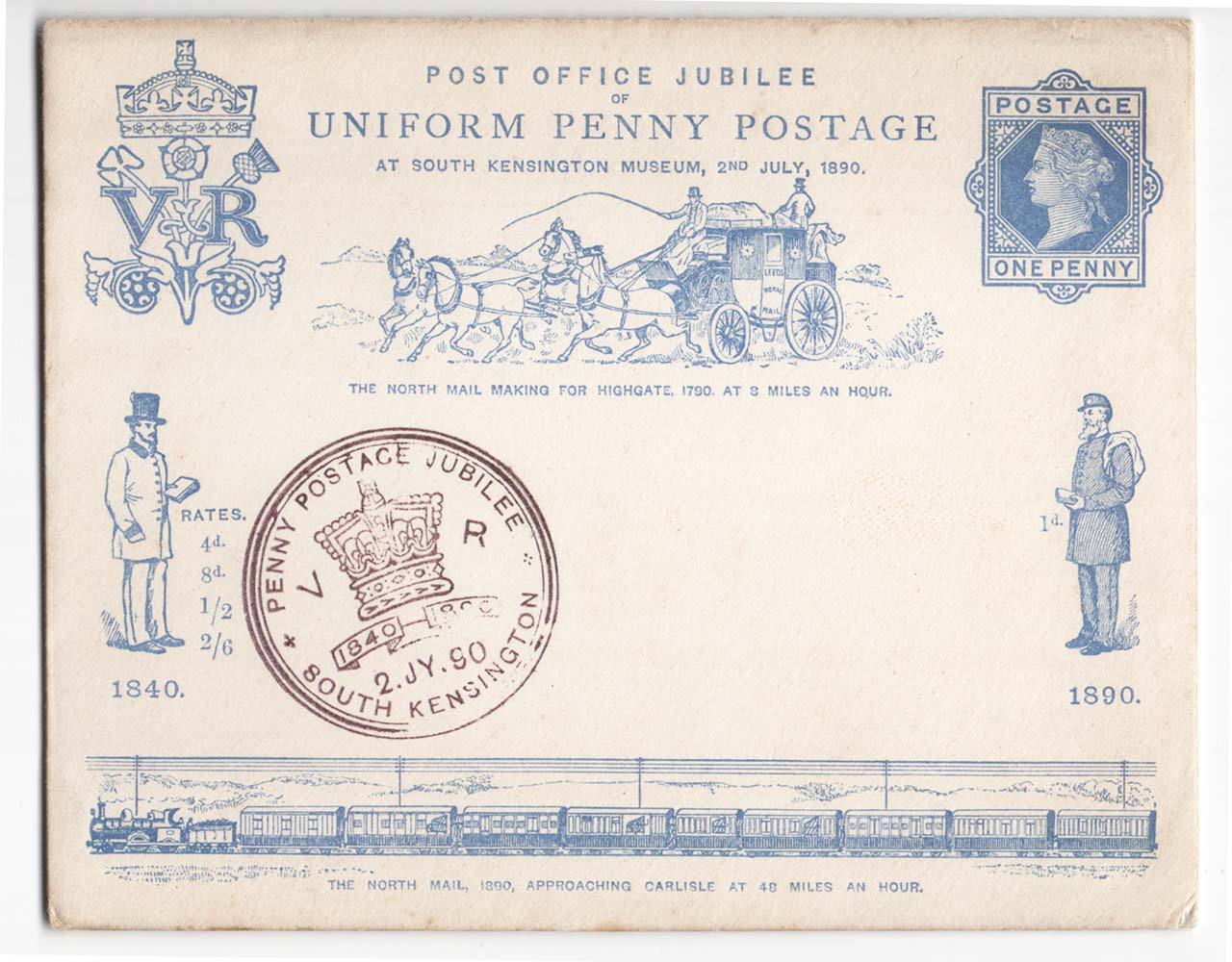 Uniform 1d Post Jubilee envelope (with insert), fine South Kensington first day special cancel