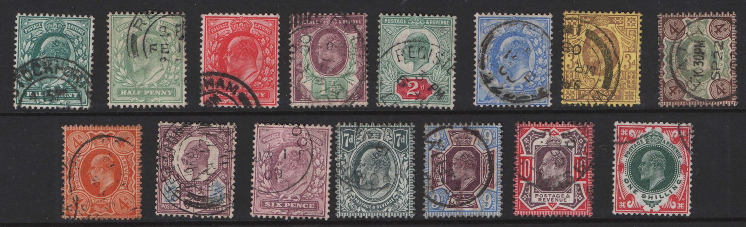 GB 1902 ½d – 1s De La Rue ordinary paper set of 15 fu-very fine used sg215-257 [ref 291-401/s/ai0242]