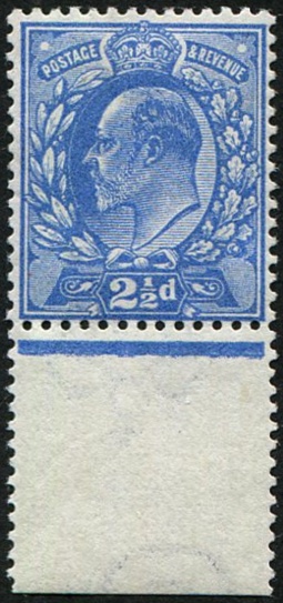 GB 1911 2½d sg276wi P14 watermark inverted unmounted mint, well centred, bottom marginal showing watermark from front of sheet Spec M17a [ref 293-402/sb/al094]