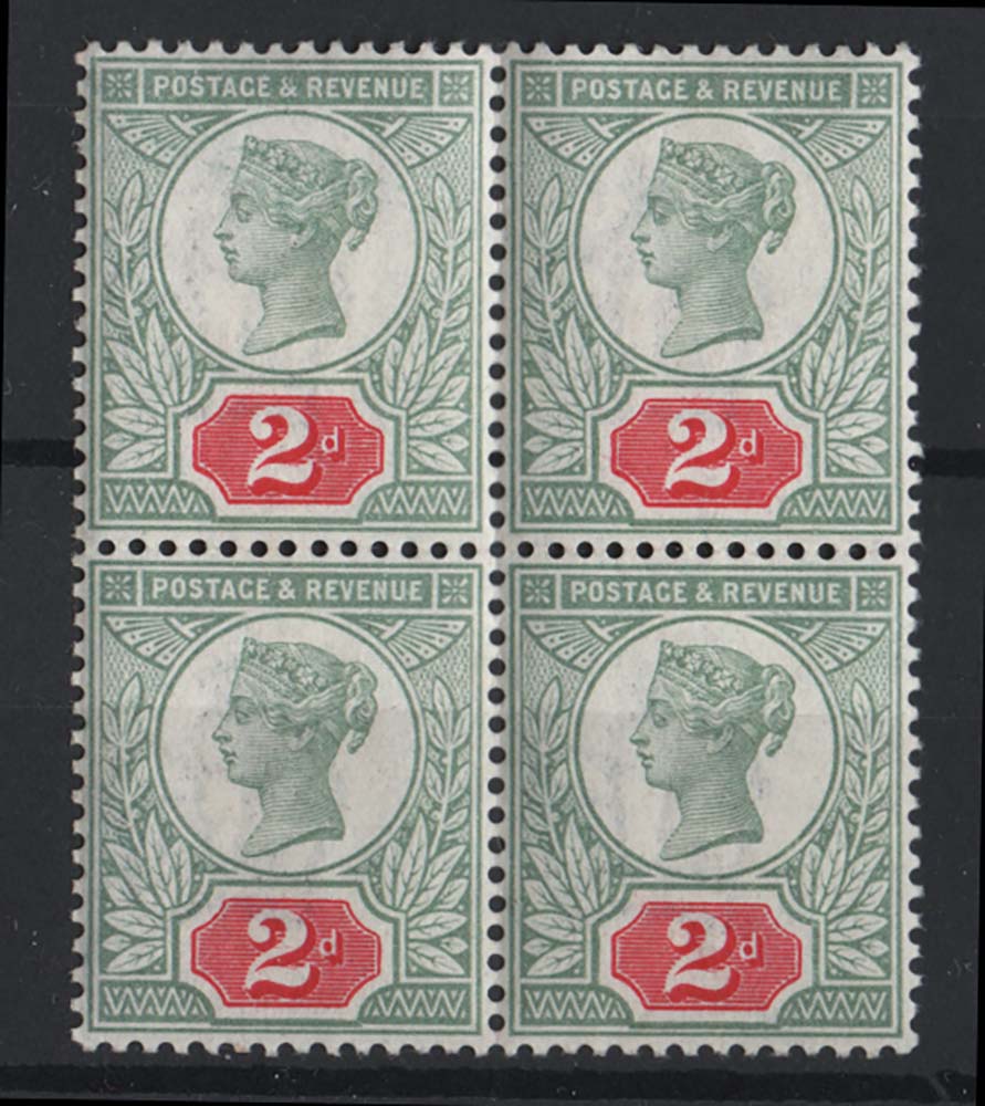 GB 1887 2d green & carmine sg200 fine um blk of 4, fine colour
