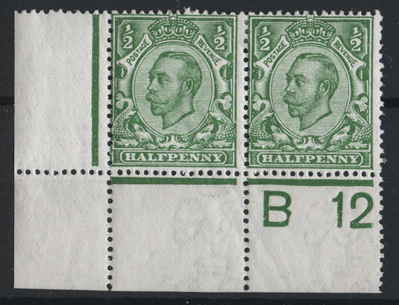 GB 1911 ½d die 2 watermark cypher sg344 fine mint B12(w) corner pair, perf type 2A, natural gum wrinkle [ref: 294/405 sa/ak0289]
