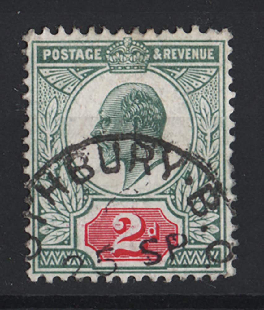 GB 1902 2d blue-green & carmine/chalky sg229 vfu