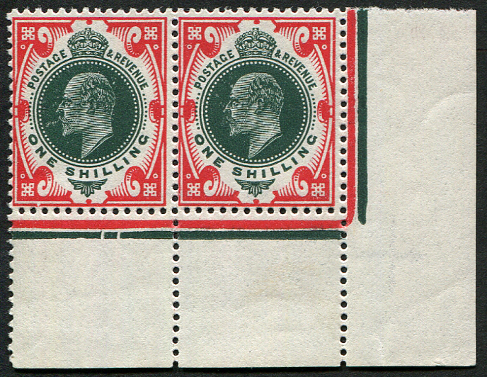 GB 1911 1s sg313 VARIETY, SCRATCH AT BACK OF EAR & BOTTOM FRAME BROKEN R20/11 IN DATE CUT PAIR unmounted mint Pristine fresh & scarce Deep Green & Scarlet Spec M47/2da, Hendon Cert ex Crossman Coll [ref 293-416/sb/al099]