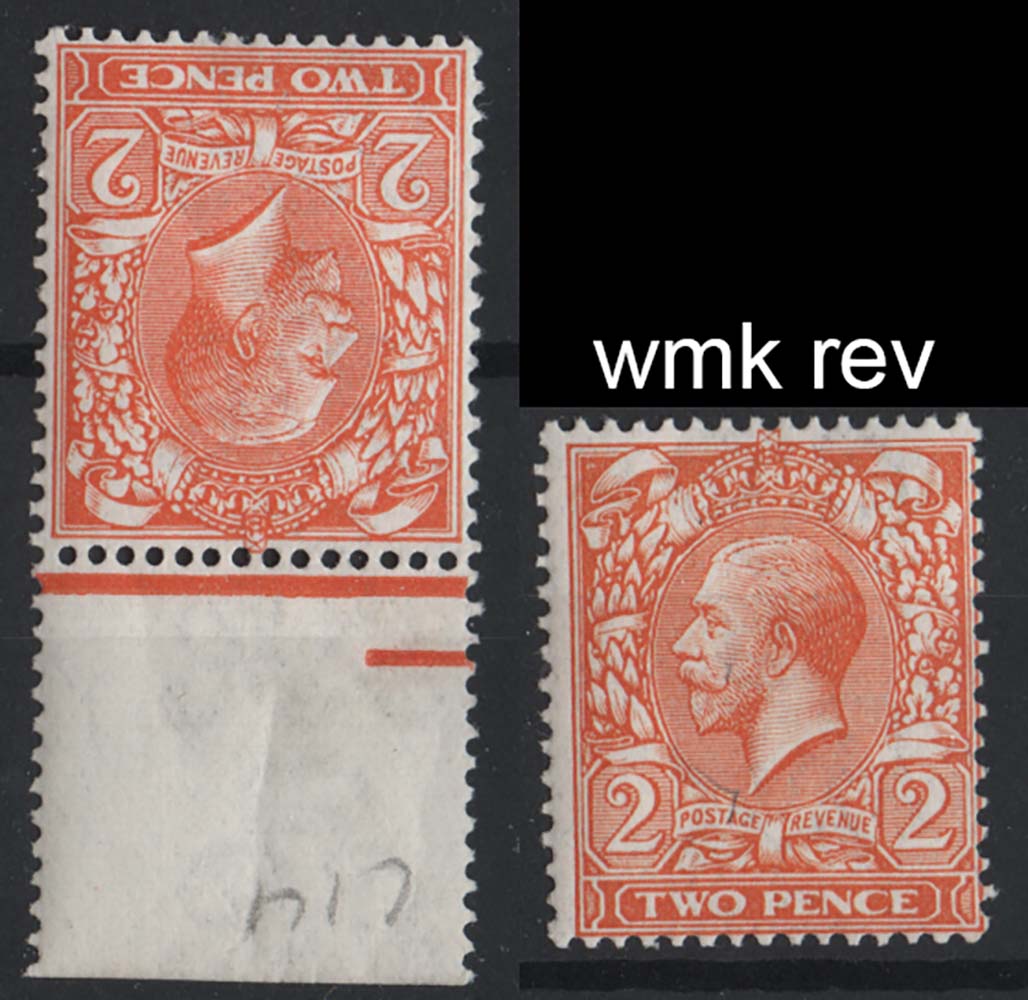 #418 GB 1912 2d orange die I wmk inverted & reversed um sg368wk, also 2d orange-yellow wmk reversed um sg366wj