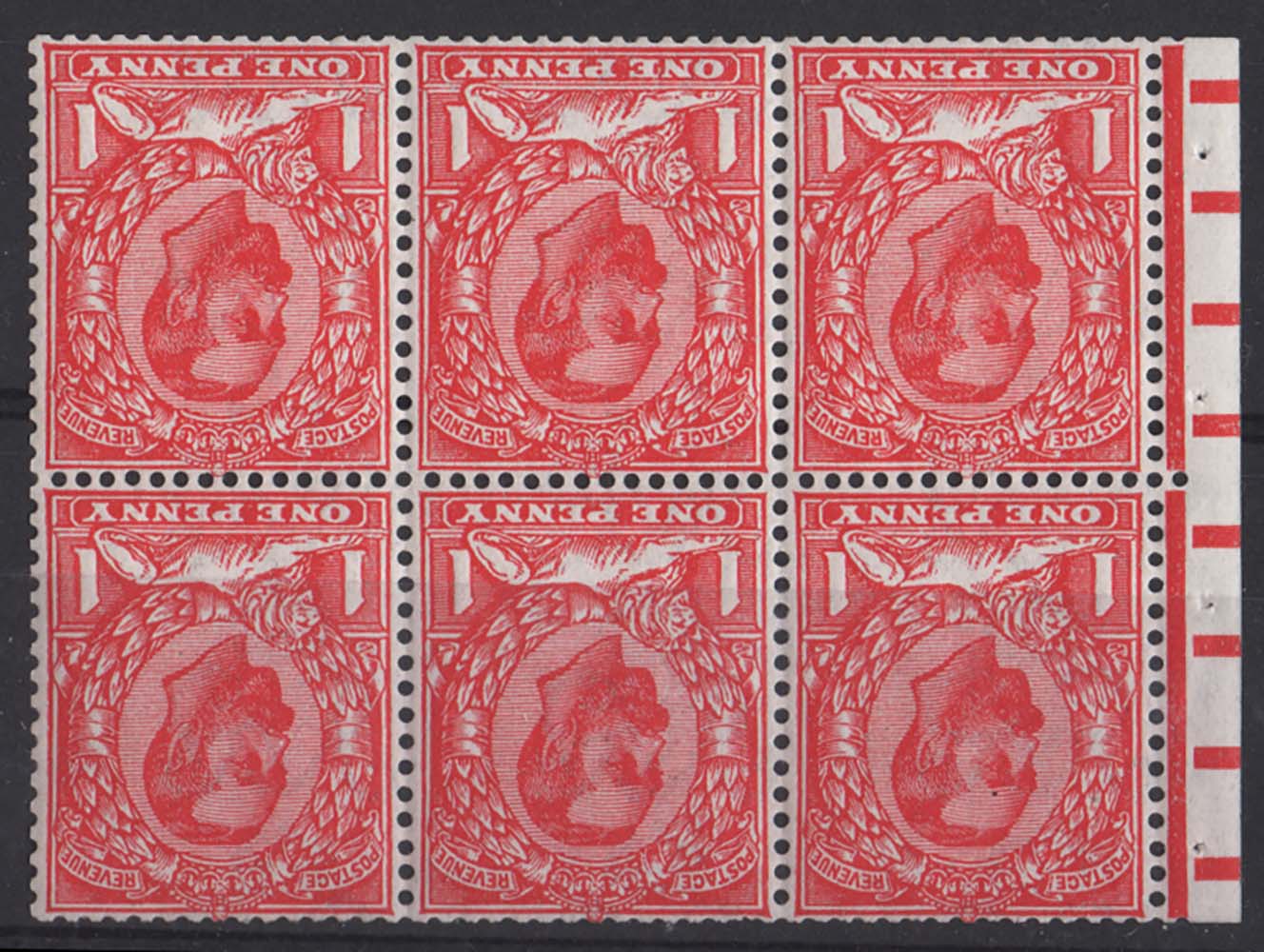 GB 1911 1d die 1b watermark inverted booklet pane of 6 very fine mint (4x um) fairly good perfs sg336 Spec NB3a cat £250 [ref 293-428/sa/ak0751]