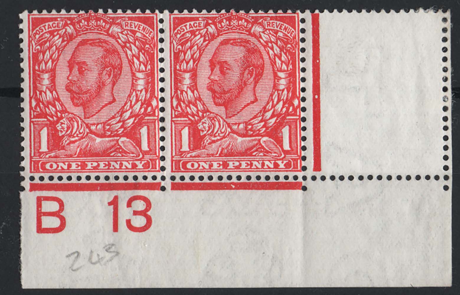 #436 GB 1911 1d die 2 wmk cypher sg345 um B13 corner pair, perf type 2