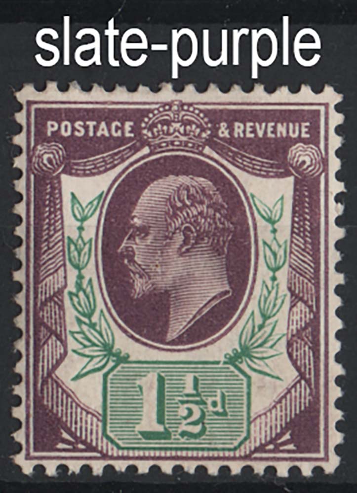 GB 1902 1½d deep slate-purple & bluish-green, chalky paper with clear break