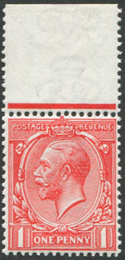 GB 1912 1d sg357a ‘Q FOR O’ variety, R1/4, stamp unmounted mint, top marginal, pristine fresh [ref 293-449/sb/al116]