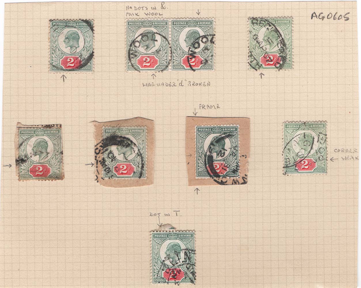 GB 1902 2d range of 8 used tablet/frame break varieties sg226, etc – interesting lot [ref 290-452/s/ag0605]