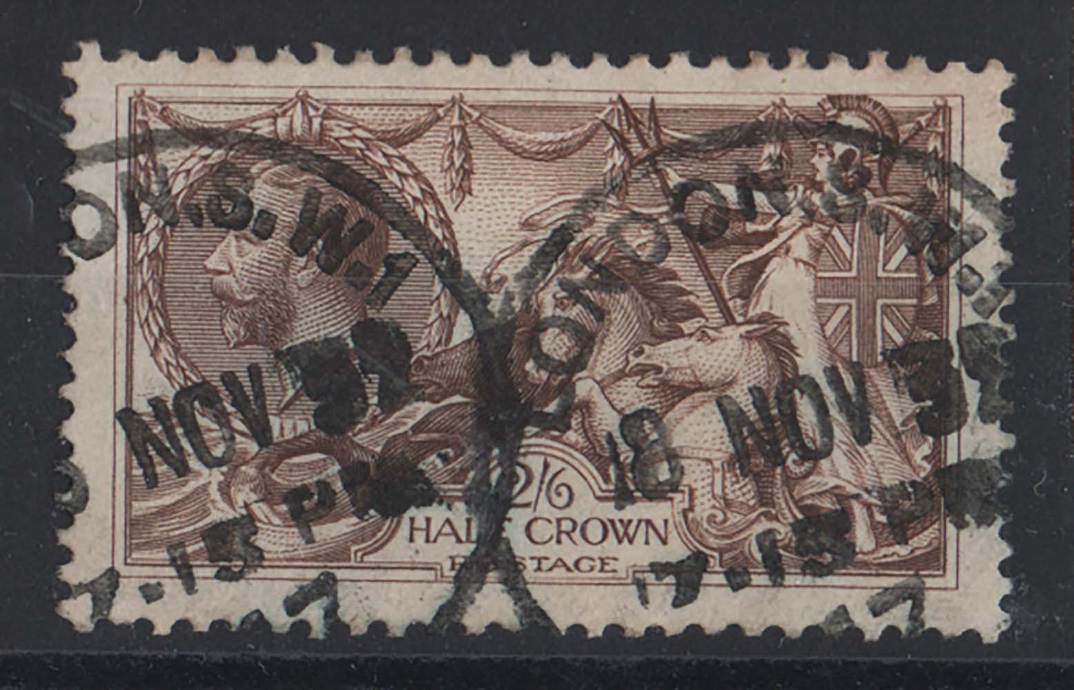 GB 1918 Bradbury 2/6d pale brown sg415a, used, fine condition with 2 heavy London SW1 circular datestamps ae1024 sa 289/ #452