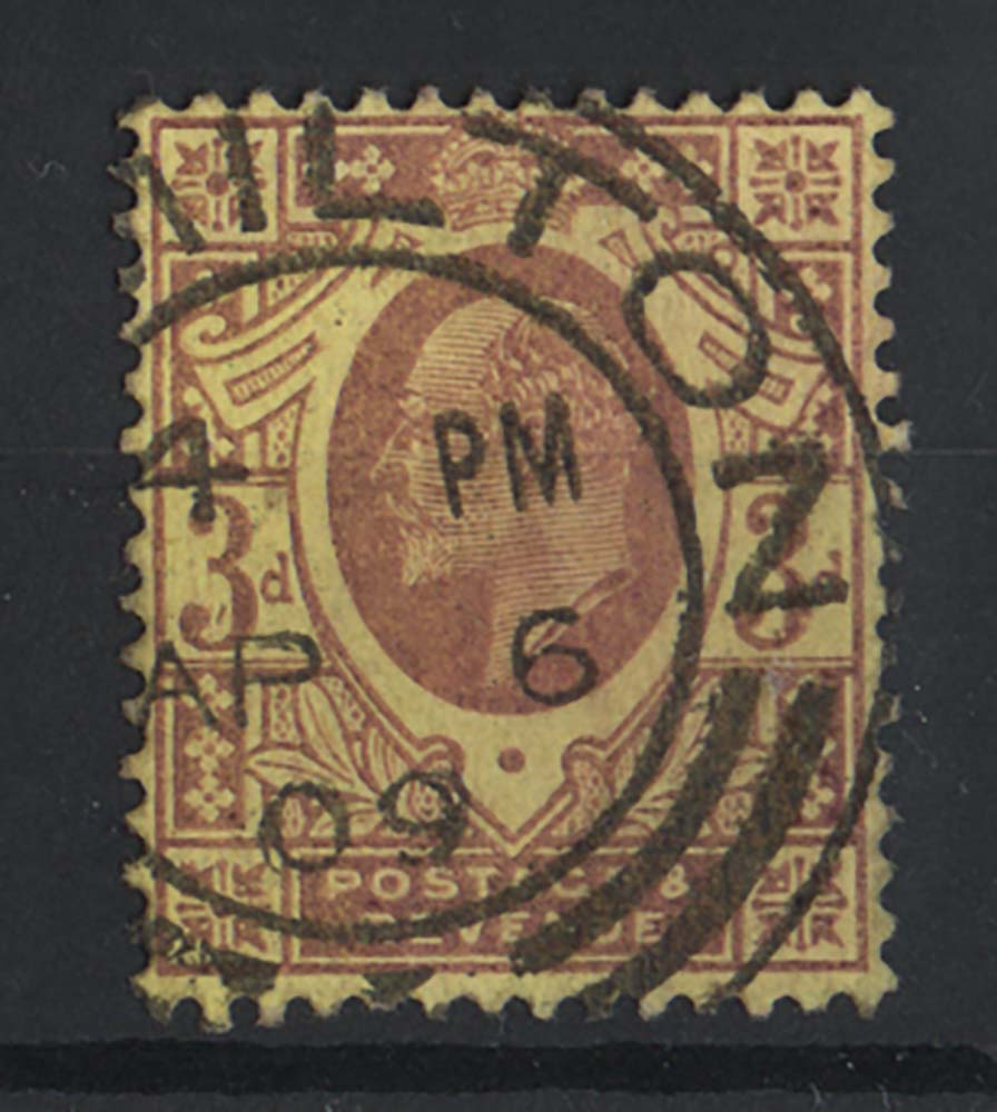 GB 1902 3d dull reddish-purple on yellow (lemon back) chalky sg233 fu c£85 [ref 290-458/sa/ag0261]