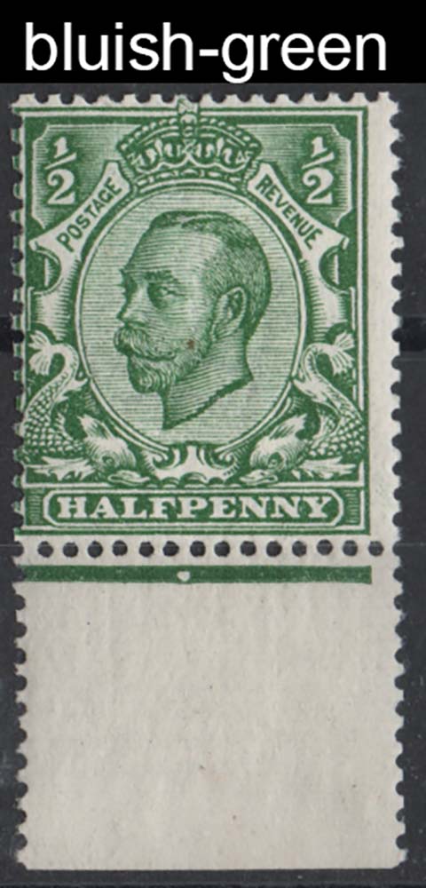 GB 1911 ½d die 2 wmk crown bluish-green (specialised shade) fine um marginal