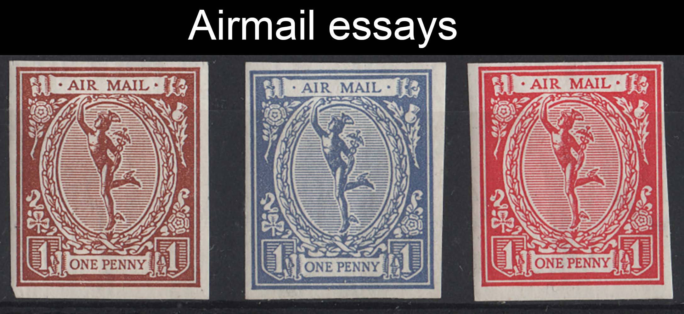 GB 1921 Mercury Air Mail essays imperf in blue, red & brown unmounted mint [ref 293-476/sa/ak0298]